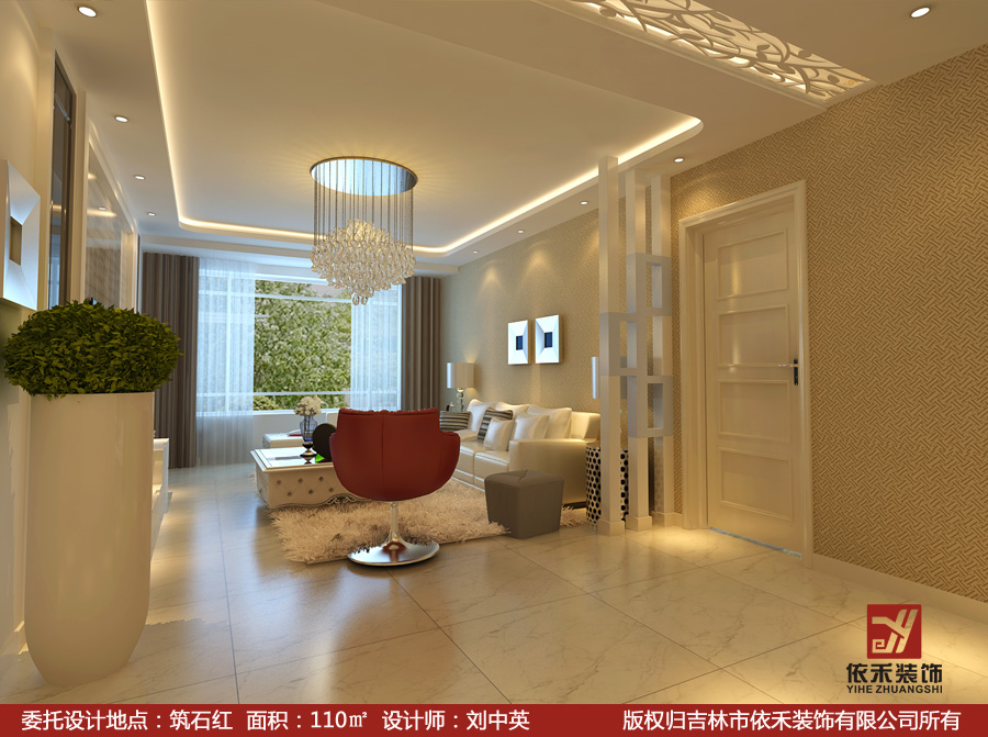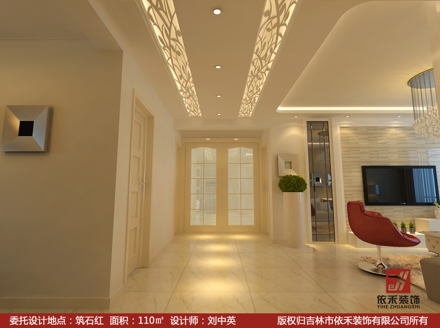 • 主創(chuàng)設計師 : 劉中英 裝修風格 : 現(xiàn)代風格 依禾裝飾選用芬蘭芬琳漆5000種歐洲色彩定制服務
